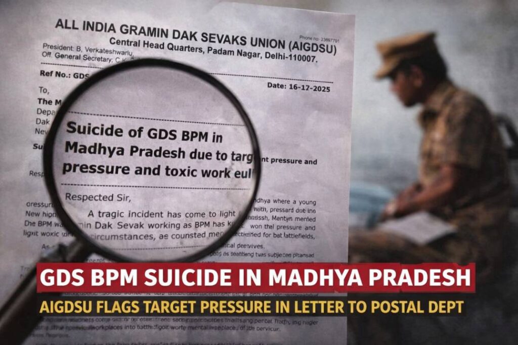 The All India Gramin Dak Sevaks Union (AIGDSU), in an official letter dated 16 December 2025, has written to the Member (Personnel), Department of Posts, New Delhi, demanding immediate intervention.
