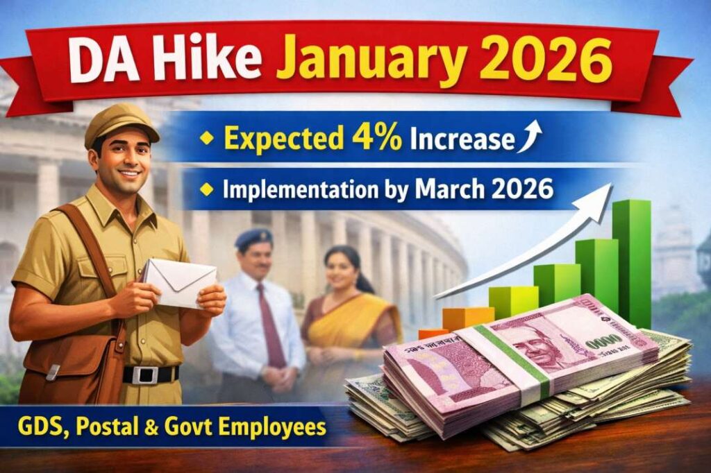 The Dearness Allowance (DA) hike for January 2026 is expected to bring good news for GDS, Postal Employees and other Central Government Employees. Based on current inflation data and AICPIN index trends, the DA hike for January 2026 is likely to be around 4%.
